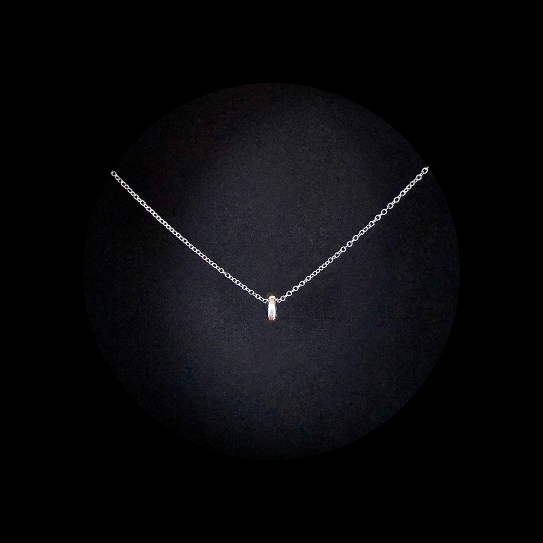 Simple, smooth, and low-key indulgent—this sterling silver necklace features a single donut-style bead that’s all about effortless charm. A little sculptural, a little sweet, and just enough shine to catch the light (and maybe a few glances).